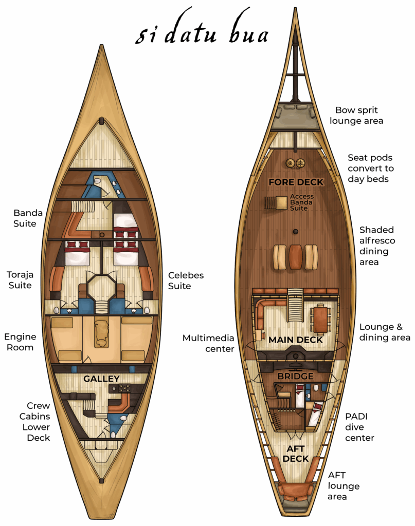 Si Datu Bua has three cabins, accommodating up to 6 guests.