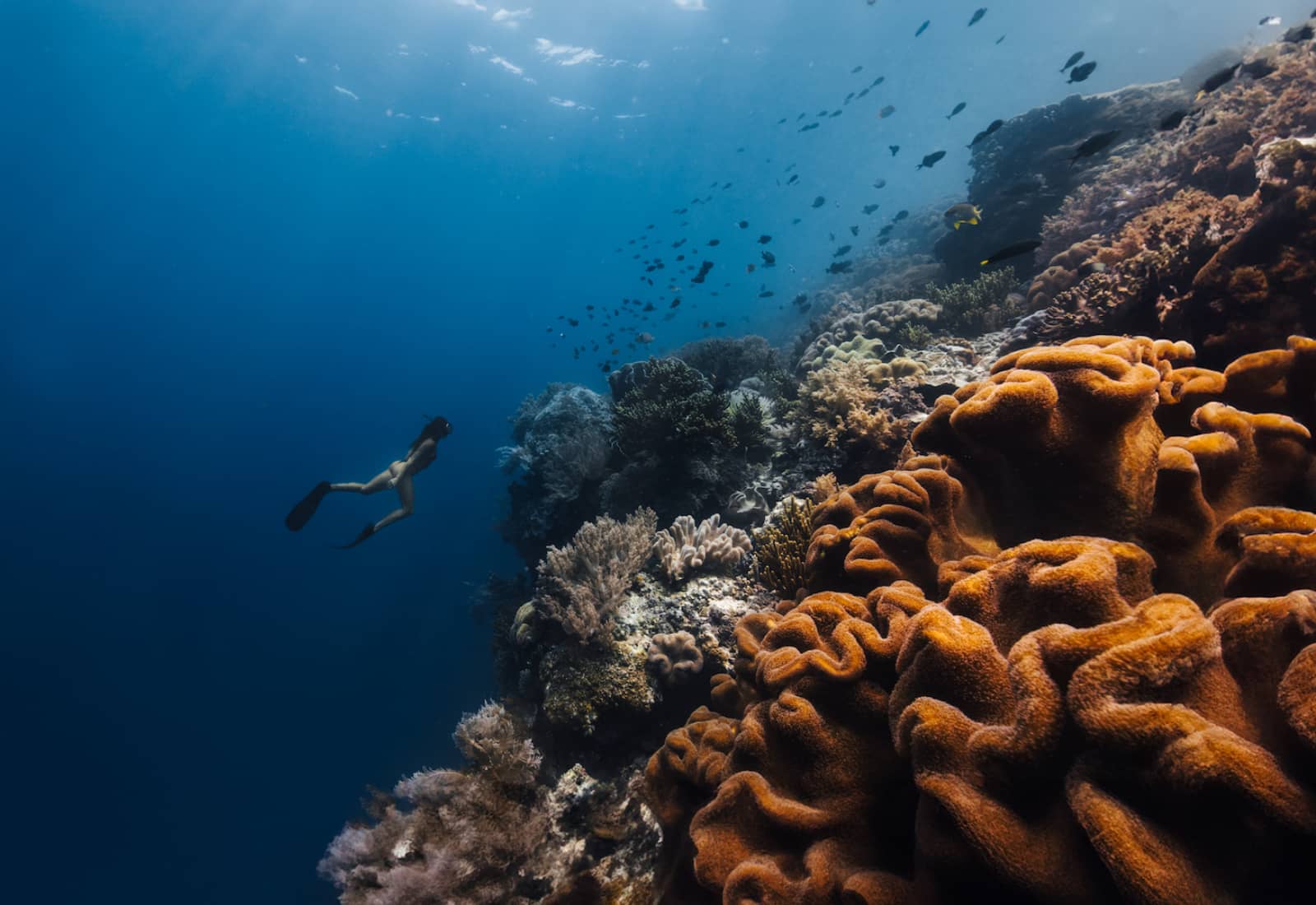 The days begin to take on a dreamy quality as we island-hop through this remote paradise. At Pulau Hatta, named for Indonesia’s first vice president who was exiled here by the Dutch, we dive with hammerheads again. At Pulau Koon, we snorkel in waters so thick with fish that the site’s name—”Too Many Fish”—seems like an understatement.
