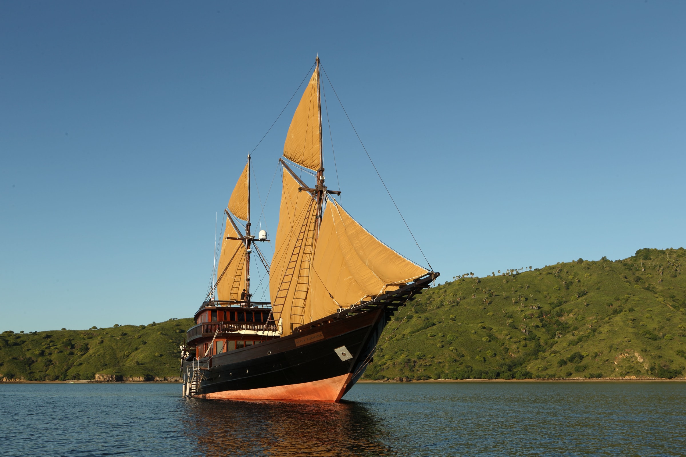 Alila Purnama is a 46-metre luxury phinisi yacht offering private charters across Indonesia, sailing through Raja Ampat, Komodo, and the Spice Islands.
