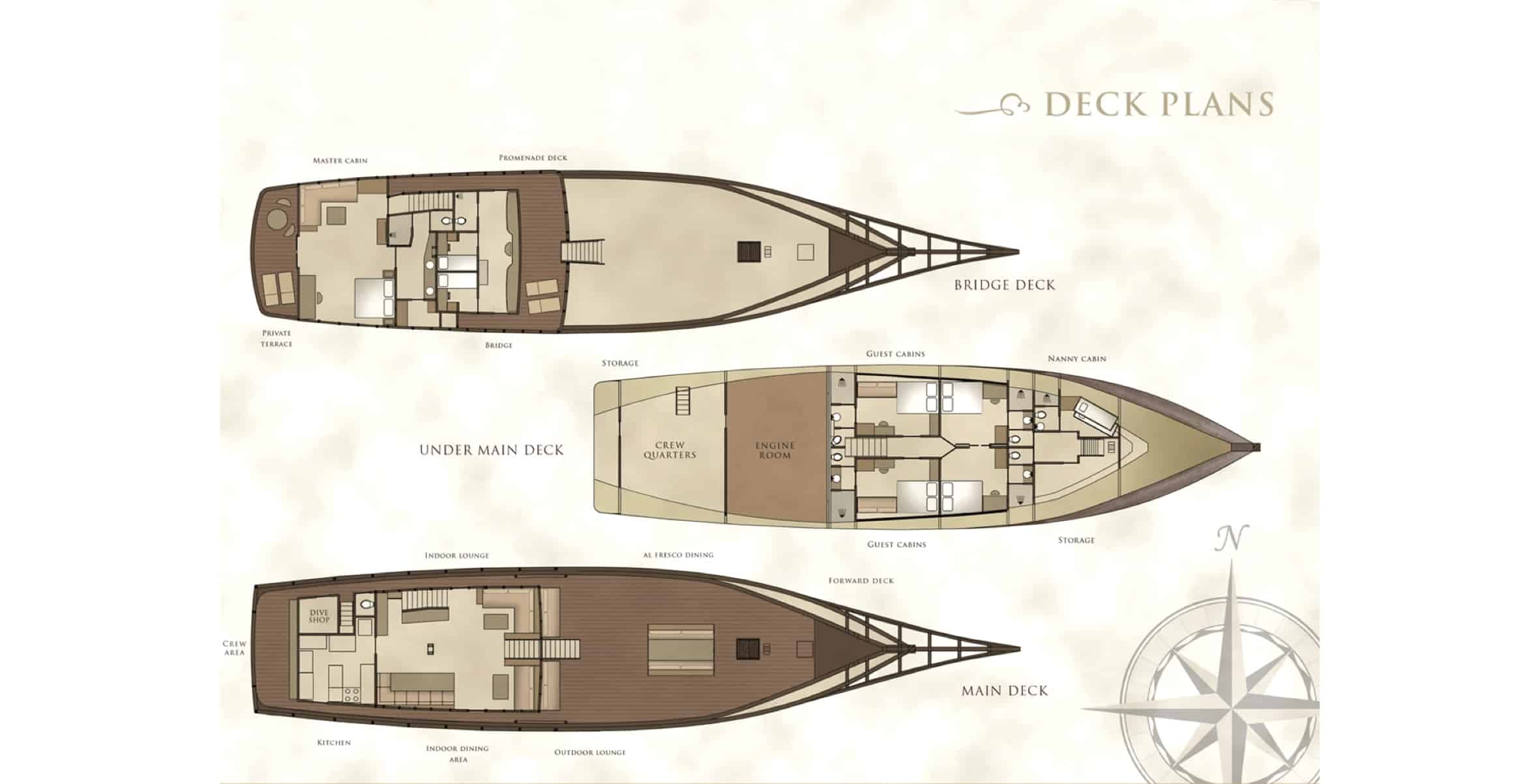 Inspired by the traditional trading vessels that once carried spices across the archipelago, she was constructed as a private owner’s yacht using the finest teak and ironwood, shaped over 200,000 hours by Bali’s most skilled carpenters. With modern systems, refined interiors and one of the region’s most advanced diving setups, El Aleph offers a deeply personal and quietly luxurious way to explore Indonesia’s most remote waters.