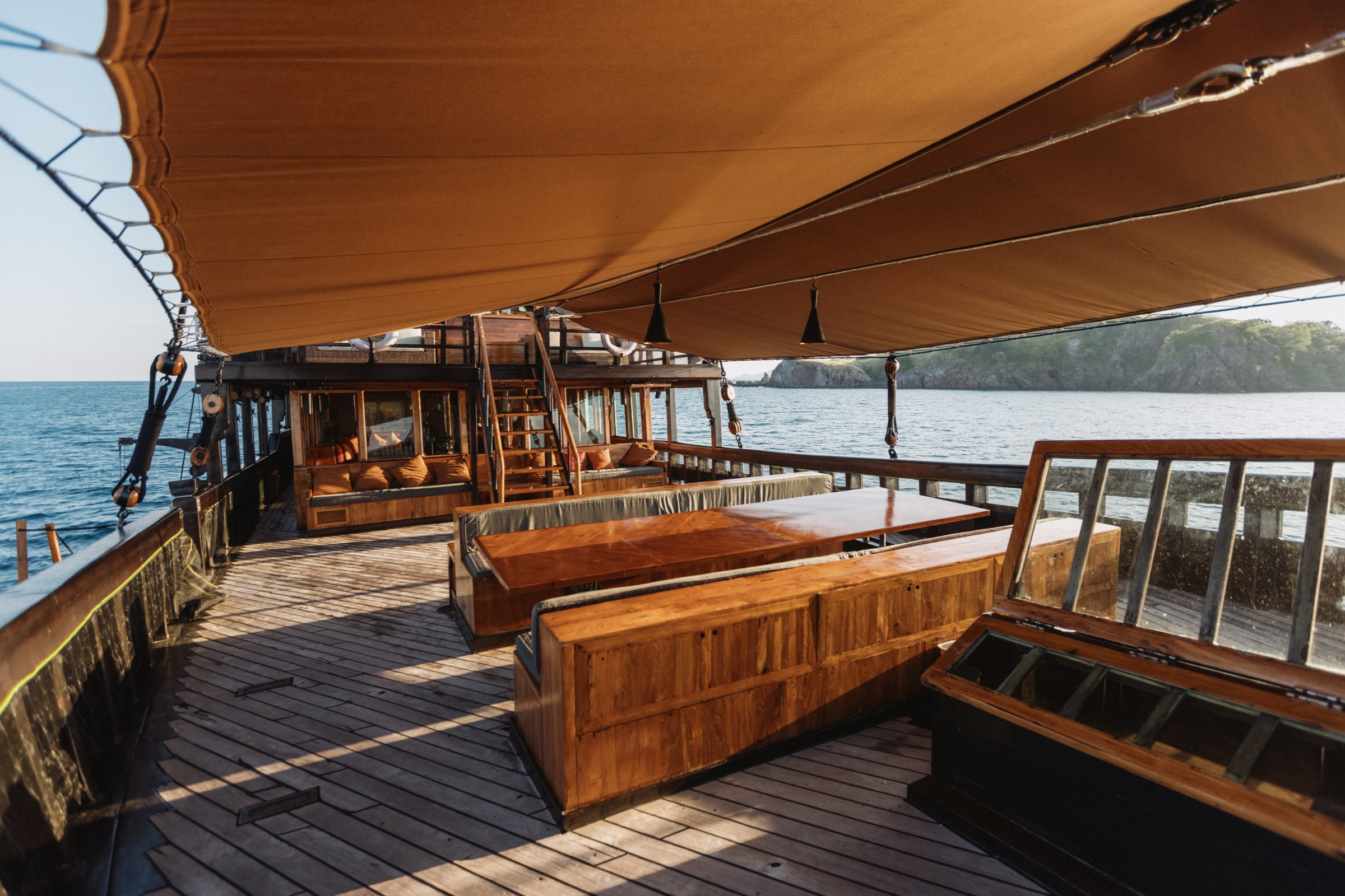 Mutiara Laut, a 46m classic schooner, offers graceful, nostalgic sailing across remote islands.