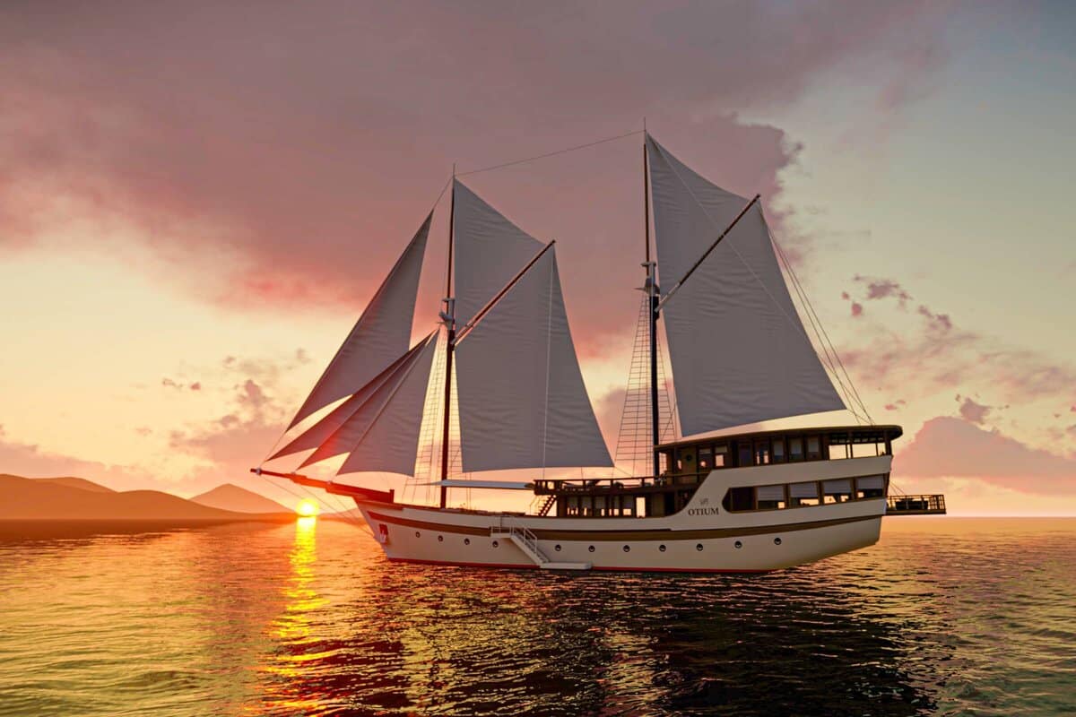 Otium is a 48-metre luxury phinisi yacht offering private charters across Indonesia, sailing through Komodo, Alor, Raja Ampat and the Spice Islands.