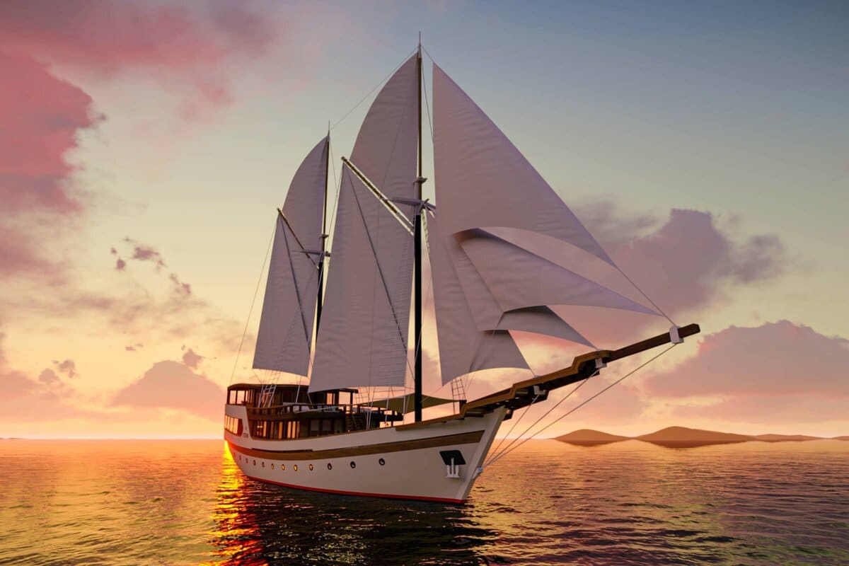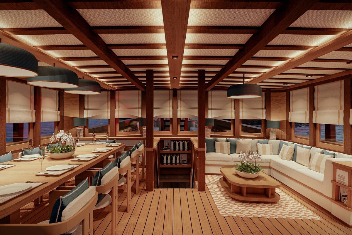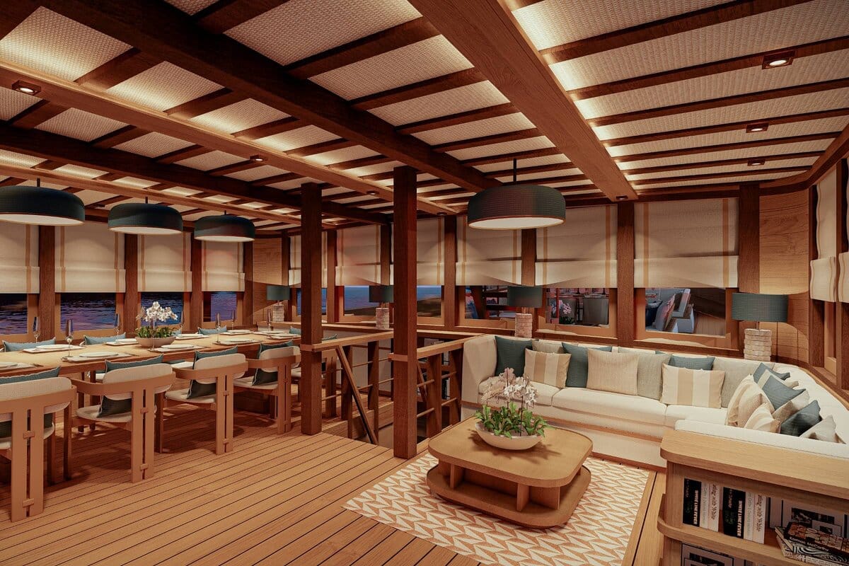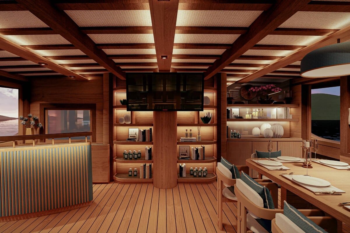 Vela, a 50m phinisi by the Nirjhara Bali team, blends sleek design with Indonesian craftsmanship for stylish cruising.